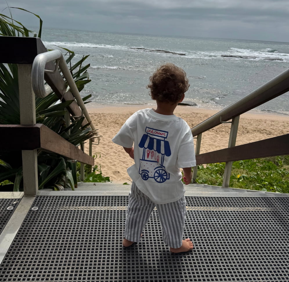 The Ice Cream Shop Tee features a vintage-inspired ice cream cart print serving up vacation vibes. Sweet, nostalgic, and effortlessly cool in soft organic cotton.
