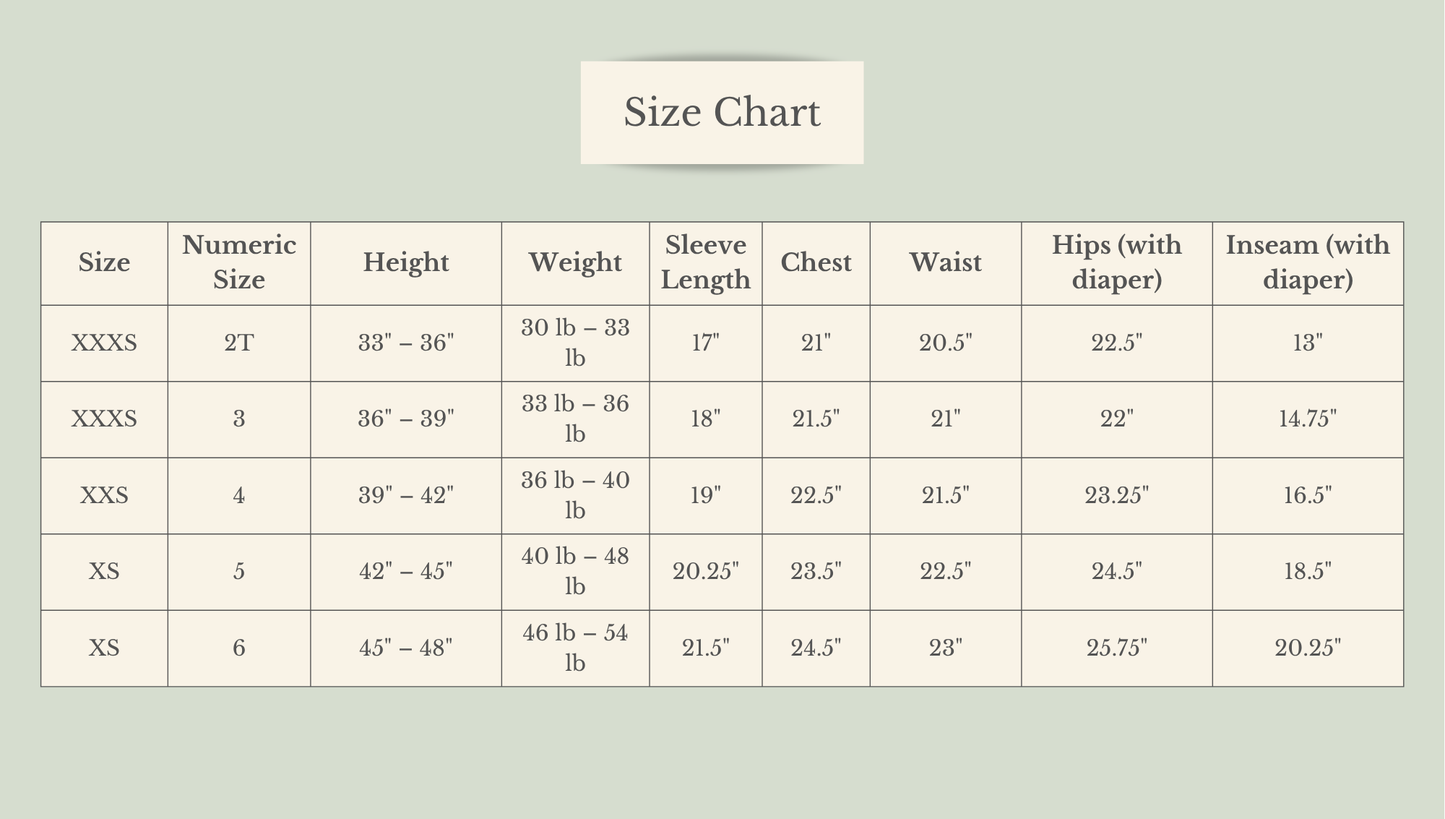 Returns & Refunds: We accept returns within 30 days on unworn items in original condition with tags attached. To request a return, email hello@olivesproutkids.com with your order number in the subject line include a brief reason for return in the body of the email.