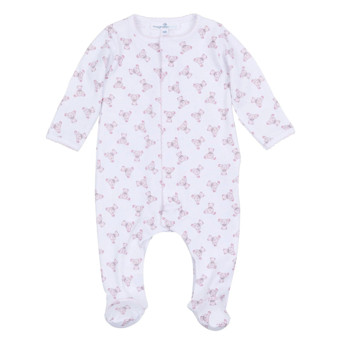 Regular price $27Adorable meets comfort in this sweet pink teddy baby footie! Featuring a hand-embroidered teddy bear design, this precious sleeper is crafted from 100% Pima cotton for ultimate softness and breathability. The convenient 2-way zipper makes diaper changes a breeze, while fold-over mittens keep tiny hands cozy.