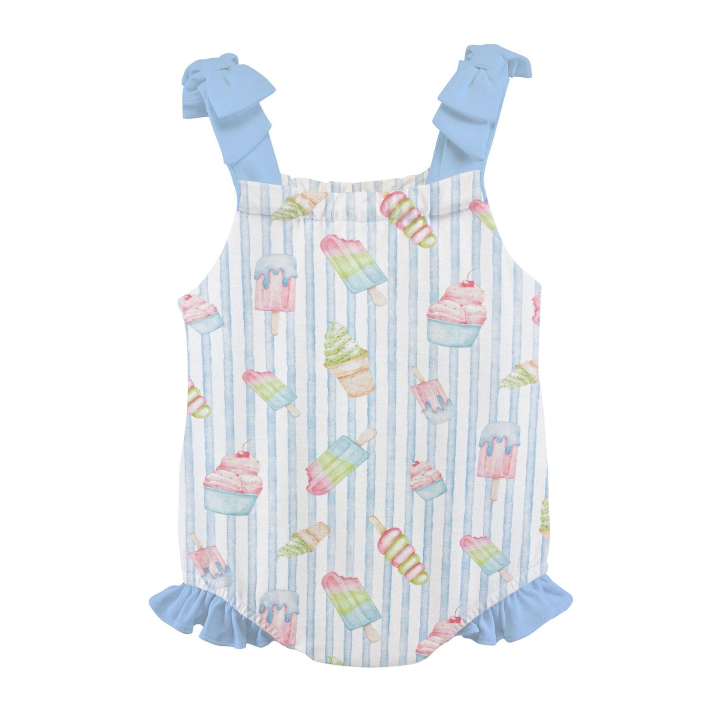 The Scoops & Smiles Bubble & Sun Hat Set from Baby Club Chic is a whimsical 100% Peruvian pima set featuring a sweet allover scoops and smiles print that feels joyful and whimsical. The cherry on top is the adorable hat!