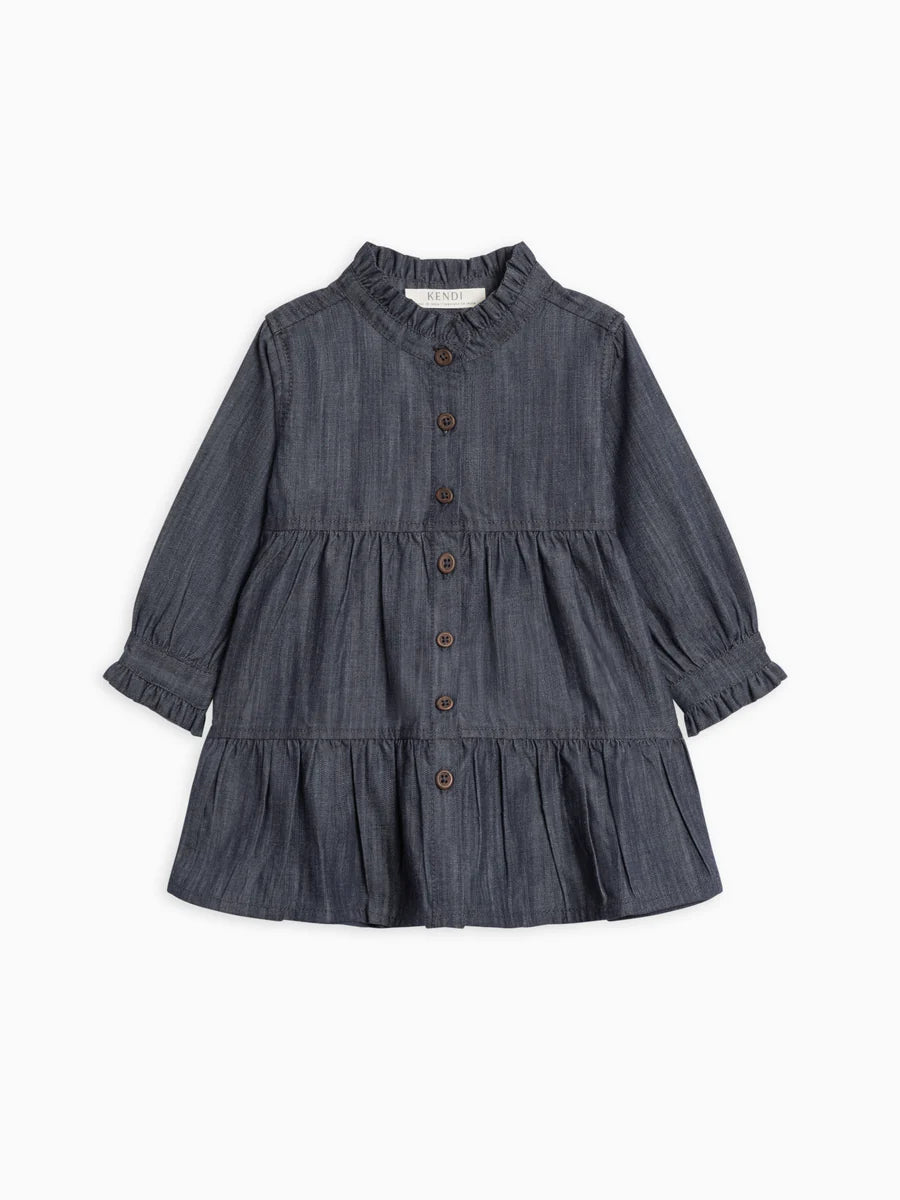 Say hello to the Ruffle Shirt Dress for girls 2T and 3T! Made from soft organic cotton chambray, it’s comfy enough for playground adventures but polished enough for family photos. With ruffled cuffs, a twirl-approved hem, and wooden buttons down the front, it’s the definition of toddler chic. The matching bow? Just the cherry on top. Easy to wash, harder to resist.